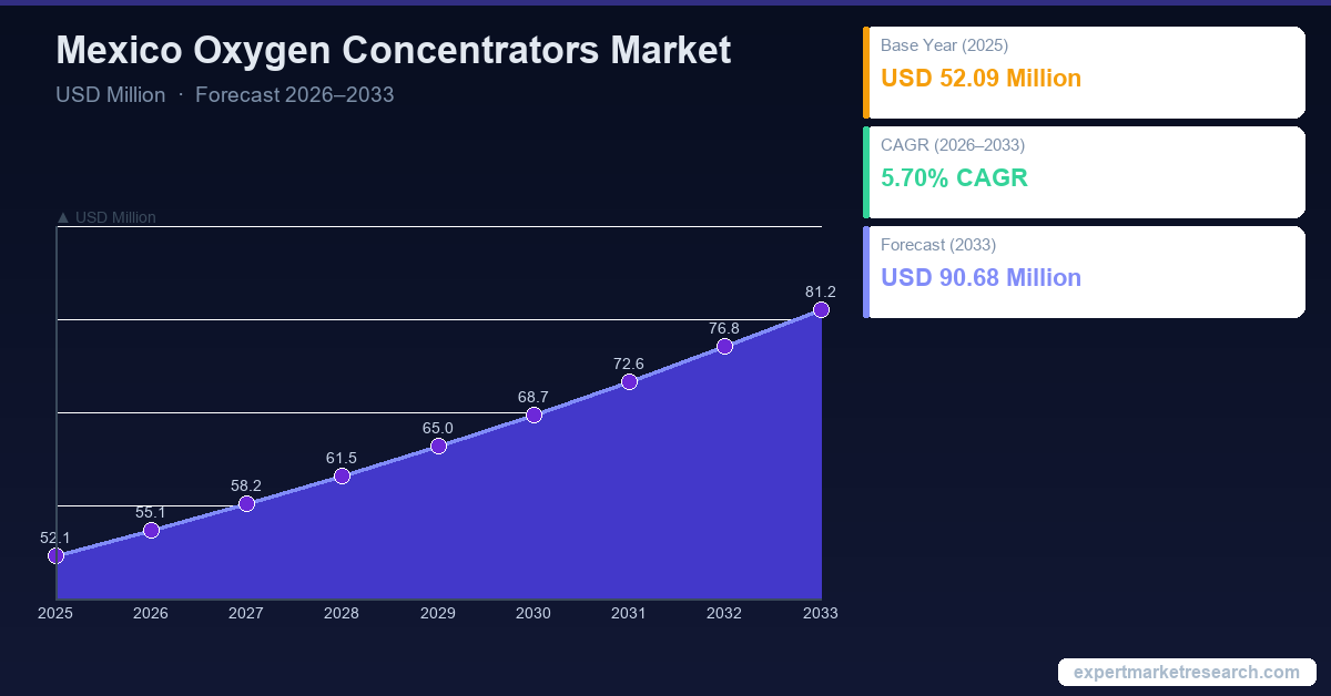 According to Expert Market Research, the Mexico oxygen concentrators market was valued at USD 52.09 million in 2025 and is projected to grow at a CAGR of 5.70% between 2026 and 2035, reaching approximately USD 90.68 million by 2035. This growth highlights the increasing importance of oxygen therapy in modern healthcare systems.