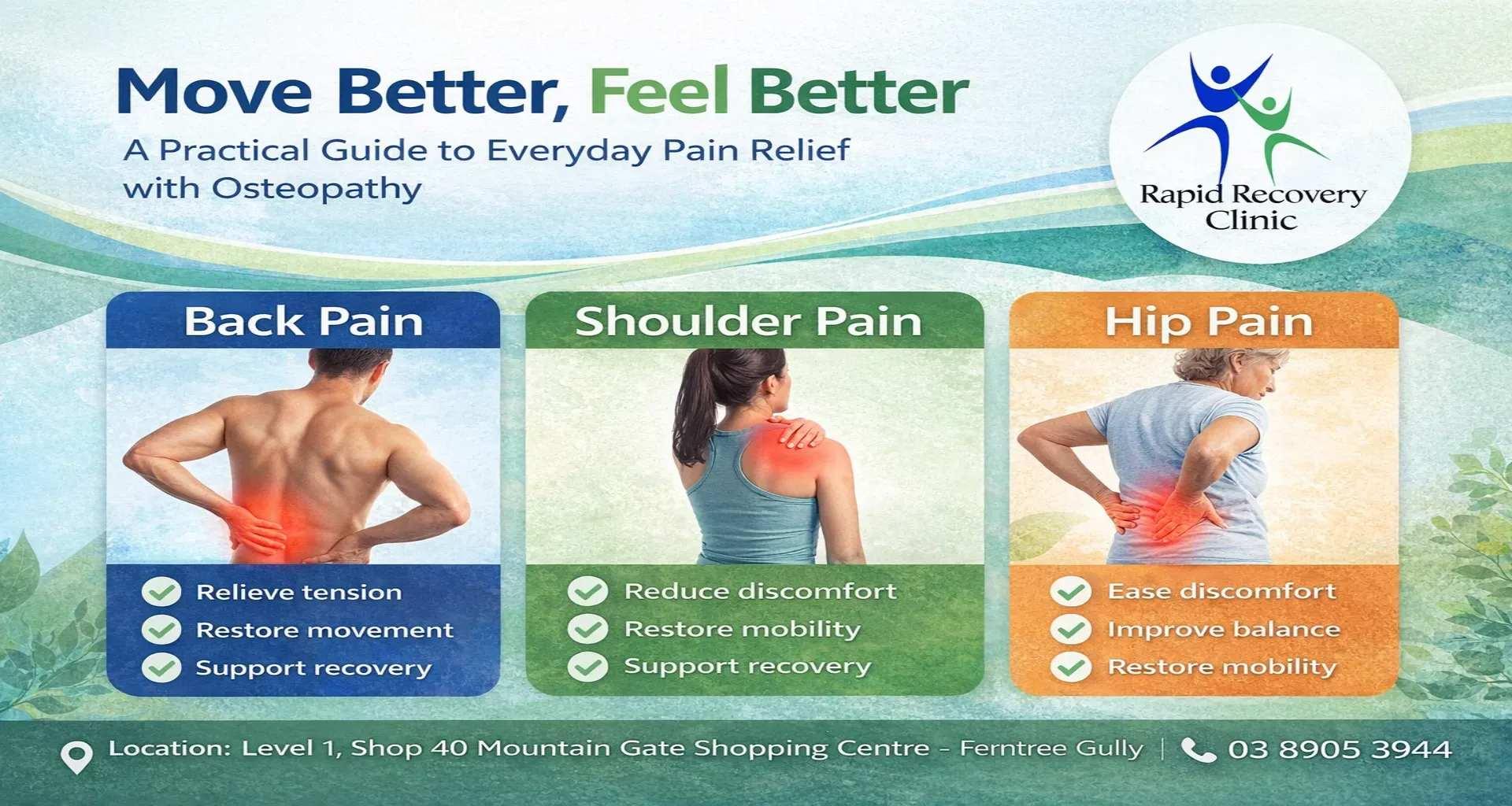 #HealesvilleOsteopathy #FerntreeGullyOsteopathy #OsteopathyCare #PainRelief #BackPainRelief #PostureCorrection #InjuryRecovery #HealthyMovement #WellnessJourney #RapidRecoveryClinic