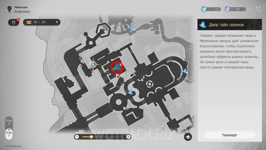 Der Ort, an dem sich die interaktiven Punkte befinden, ist der Dimensionsanker „Hof der drei Jahreszeiten“ – dort gibt es drei Stellen zum Anklicken.