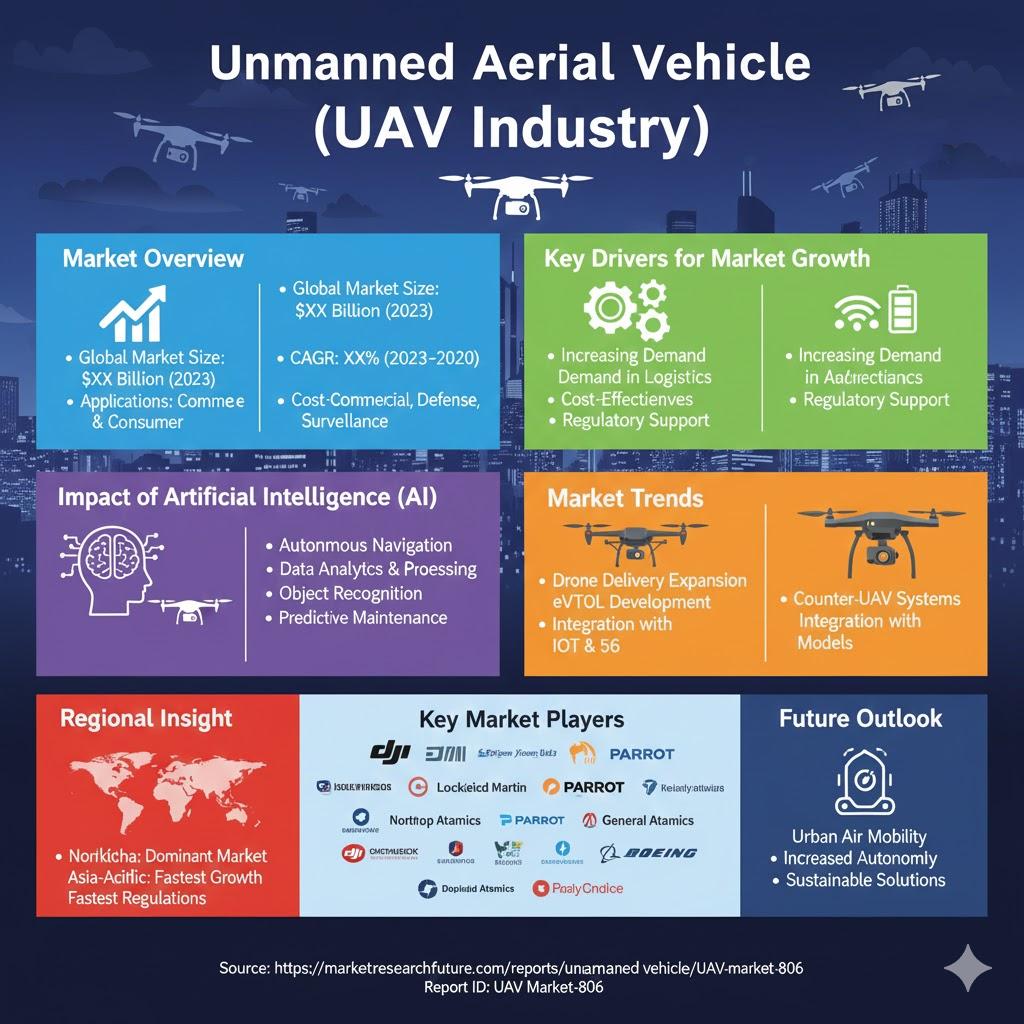 The Unmanned Aerial Vehicle UAV Market is increasingly characterised by rapid innovation, fragmentation of applications, and converging business models. The traditional defence-only view is shifting: civil and commercial use cases are now major growth drivers. The rise of autonomy, data analytics, connectivity, and fleet operations means that UAV deployments are less about “buy a machine” and more about “deploy a capability”. The industry value chain is shifting accordingly—from hardware manufacturing to system-integration, services, analytics and operations. In parallel, regulatory, safety and certification frameworks are maturing—unlocking new business models and reducing uncertainty for investors.