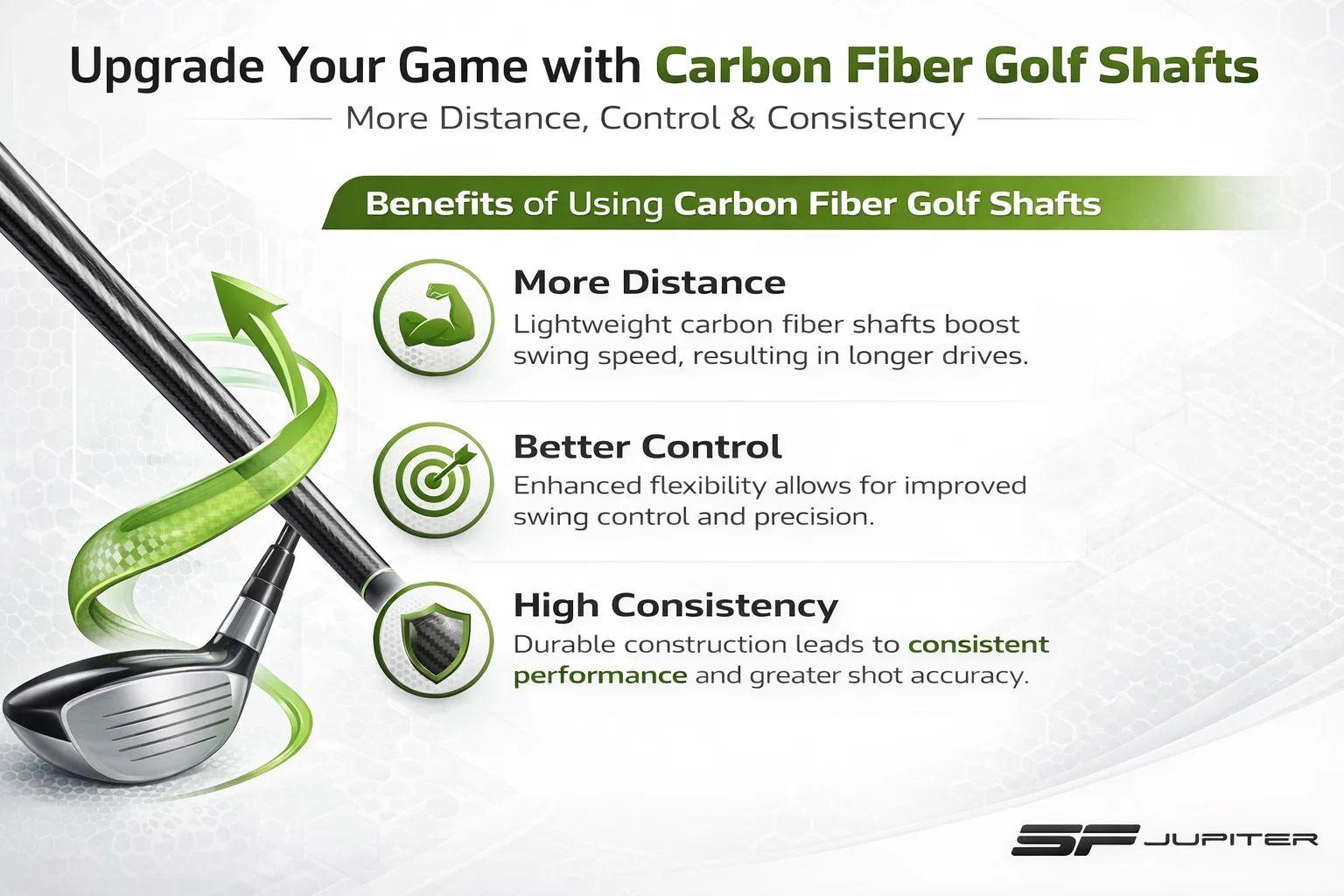 Because carbon fiber shafts are lightweight and flexible, they allow golfers to produce more power with less effort.